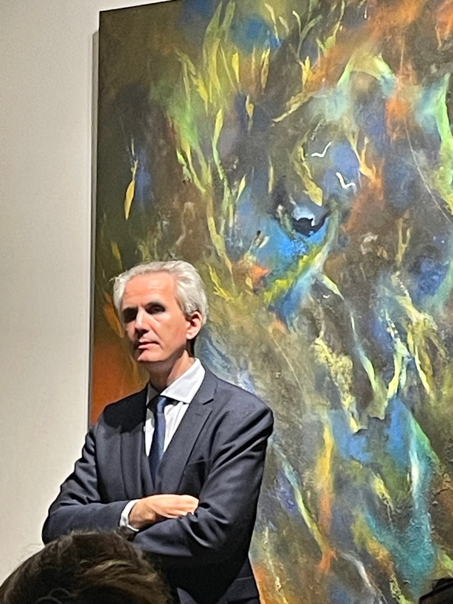 La Galerie Guillaume a été très honorée de recevoir le professeur Raphaël Gaillard, nouvel invité des Rencontres de la galerie, cette année sur le thème « Perspectives ». En effet, le parcours de Raphaël Gaillard est remarquable : fils d’une professeure d’allemand et d’un psychanalyste, issu d’une famille dans laquelle la musique et la littérature étaient des valeurs essentielles et des pratiques quotidiennes, Raphaël Gaillard a un double « cursus » de normalien et de psychiatre. Il dirige actuellement le pôle hospitalo-universitaire de psychiatrie de l’hôpital Sainte-Anne et est professeur de psychiatrie. Dans son métier qui n’est pas rien (Sainte-Anne reçoit 12000 patients par an), Raphaël Gaillard s’attache « à trouver les mots justes, car parfois un seul mot permet de mettre en harmonie le psychiatre et le patient, il y a quelque chose de musical à ce moment, il y a une harmonie, c’est un moment d’accordage de grâce pour le psychiatre ». Avec des mots simples, Raphaël Gaillard parle des liens entre folie et créativité qu’il explore dans un livre passionnant « Un coup de hache dans la tête » (2022, Grasset), mais aussi des effets de l’IA sur nos cerveaux « soumis à très rude épreuve », qu’il détaille dans « L’homme augmenté, futurs de nos cerveaux » (2024, Grasset). Raphaël Gaillard, homme complet, a été élu à l’Académie française en 2024.