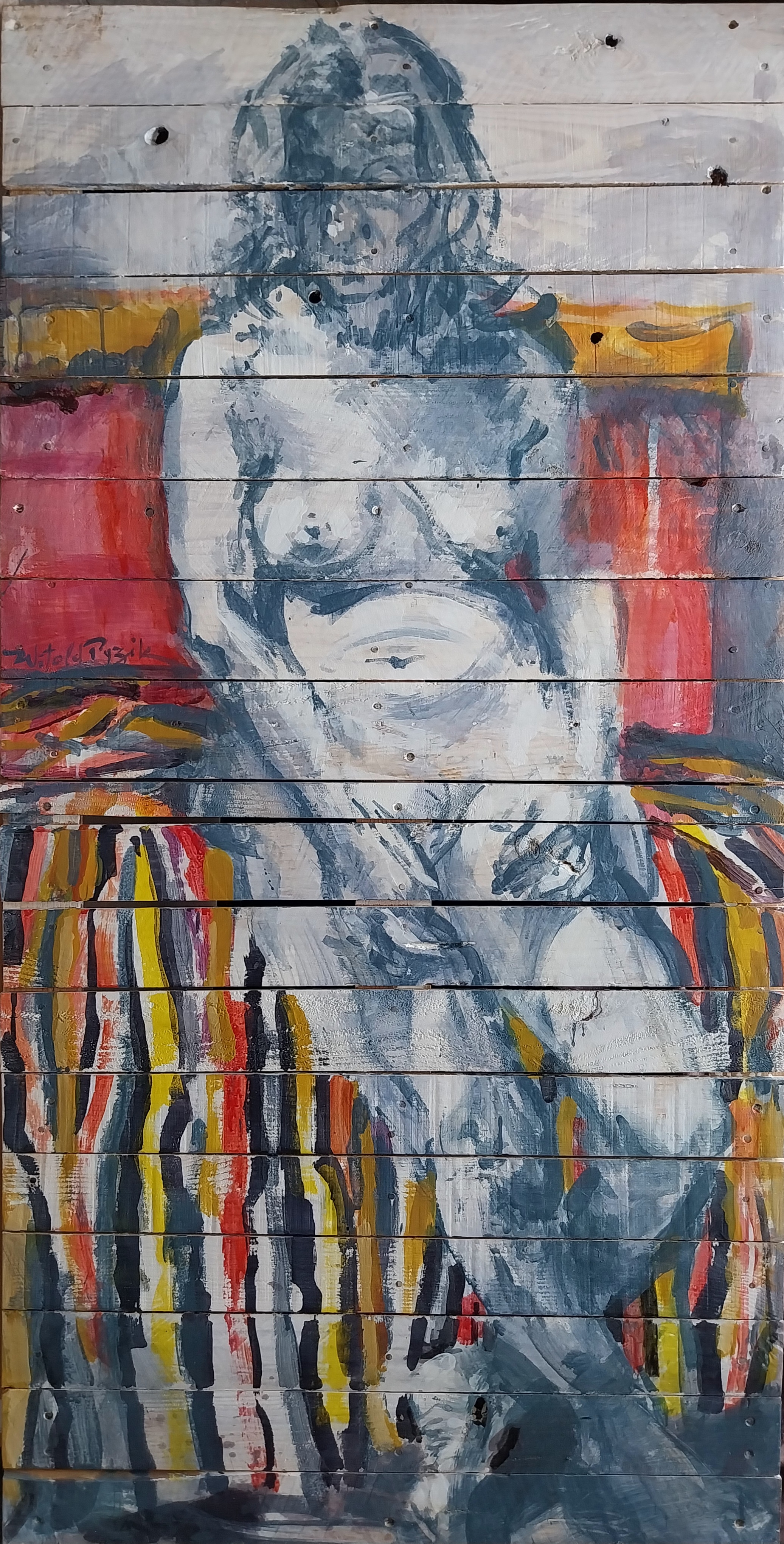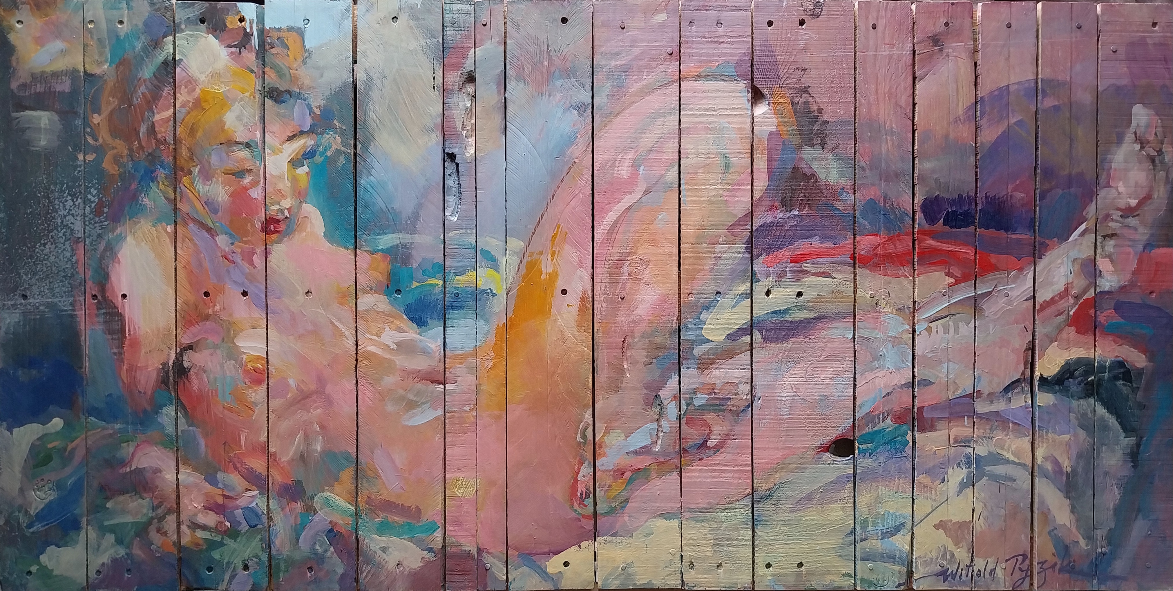 Né à Gdansk (Pologne) en 1961, Witold Pyzik s’installe définitivement en France en 1985 après des études à l’Ecole Supérieure des Beaux-Arts de Poznan. Pour le critique d’art Alexandre Crochet, « la sensualité irrigue l’œuvre de Witold Pyzik. Puisant dans un thème immémorial, le nu, l’artiste réinvente les cadrages, les points de vue, en éliminant le superflu pour ne livrer qu’un entêtant tête-à-tête avec le corps dévoilé. Sculptant avec le pinceau des nymphes plus encore qu’il ne les peint, Witold Pyzik donne littéralement chair et épaisseur à travers la couleur généreuse et envoûtante. Maillol ou encore Renoir ne sont pas loin de ces créatures offertes et inaccessibles, puissantes et intimes, allégoriques presque. Impudiques et réservées, les femmes de Witold Pyzik sont surprises dans leur quotidien, immanentes aussi bien qu’éternelles ».