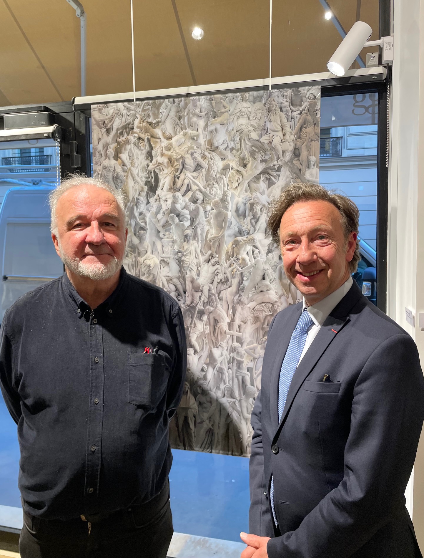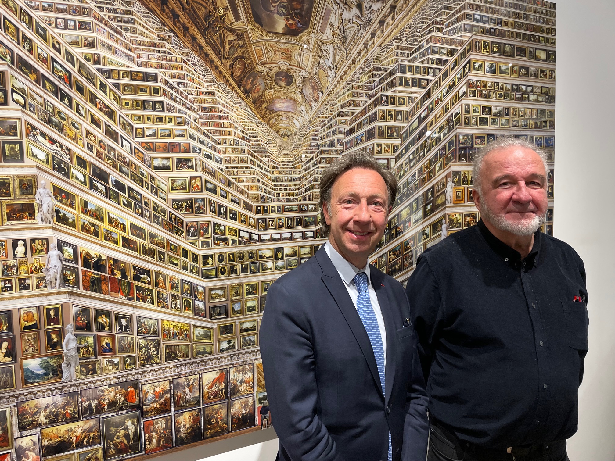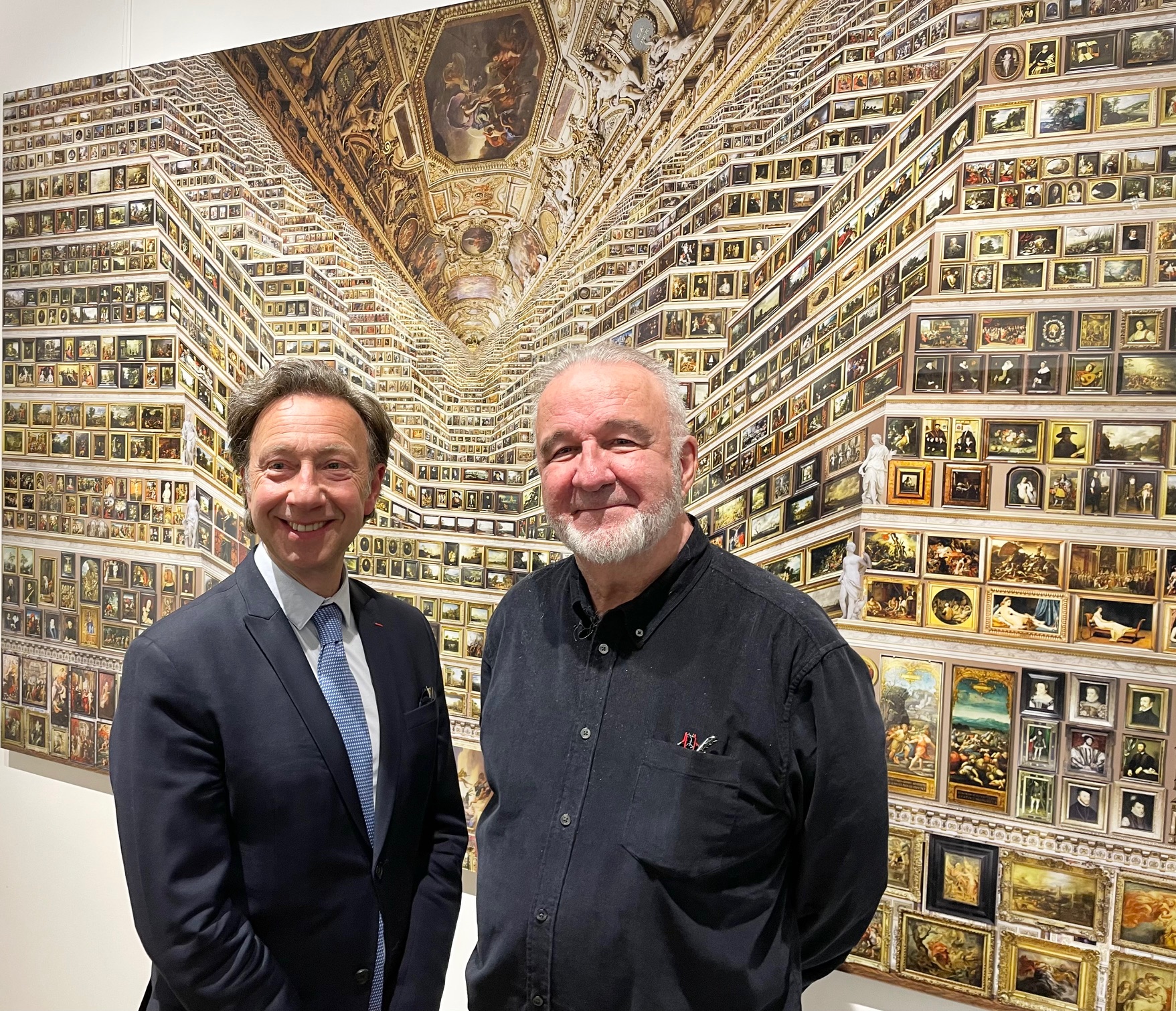 Clap de fin de l’exposition « Patrimoine » de Jean-François Rauzier. Avec la présence amicale de Stéphane Bern. Depuis de longues années, Stéphane Bern est un ardent promoteur et défenseur du patrimoine français avec ses émissions télévisées, notamment Secrets d’histoire. Il mène aussi des actions très importantes et généreuses en faveur du patrimoine au travers de la Fondation Stéphane Bern pour l’Histoire et le Patrimoine - Institut de France, et la Mission Patrimoine qui lui a été confiée par la Fondation du Patrimoine et qui est soutenue par le ministère de la Culture. Bravo pour son action et merci à lui pour sa présence !