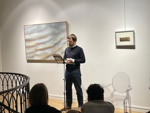Hier à la Galerie Guillaume : émouvante soirée consacrée à Victor Hugo avec Grégoire Leprince-Ringuet, acteur, qui, entre deux répétitions de Cyrano de Bergerac (prochainement au Théâtre Antoine avec Edouard Baer) est venu lire des textes de Victor Hugo. Il a lu notamment des lettres et des poèmes de Victor Hugo adressés et dédiés à sa fille Léopoldine et à son gendre Charles Vacquerie, juste mariés et morts tragiquement noyés dans la Seine devant la maison familiale de Villequier en 1843. Grégoire Leprince-Ringuet, également poète, a lu ces textes devant un dessin de Victor Hugo prêté aimablement pour l’occasion par Jean Cabaret, conservateur du musée Victor Hugo de Villequier. En écho à une grande photographie de l’estuaire de la Seine de Jérémie Lenoir.