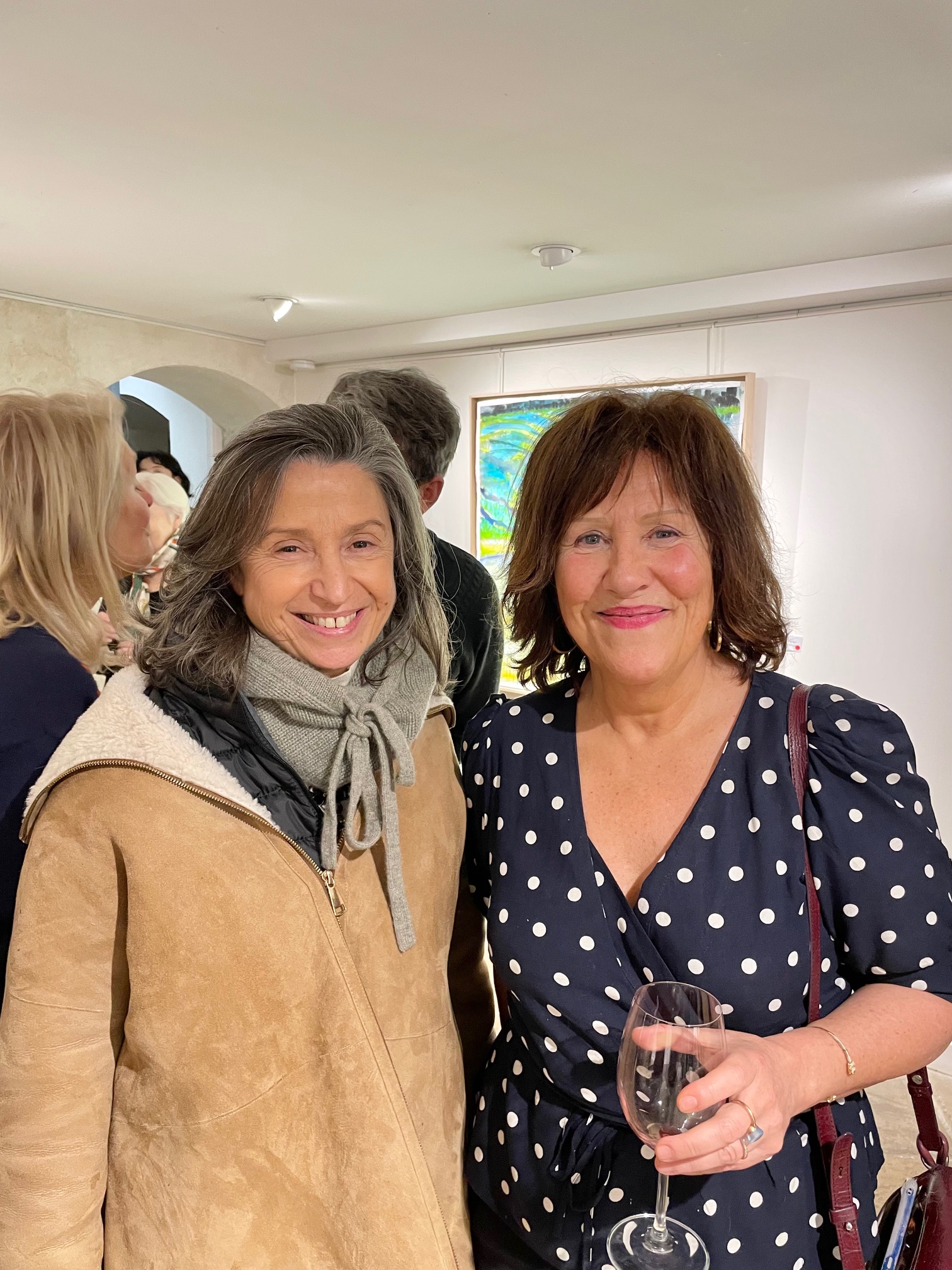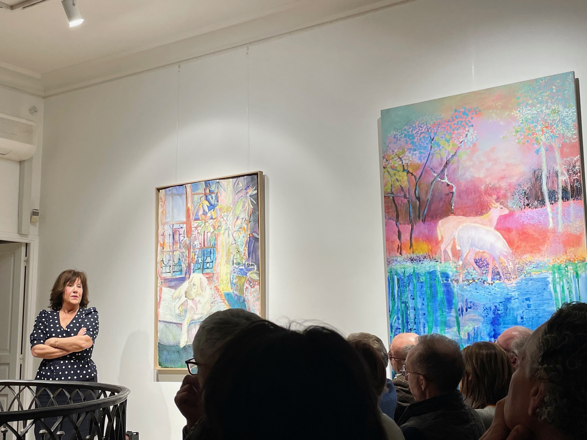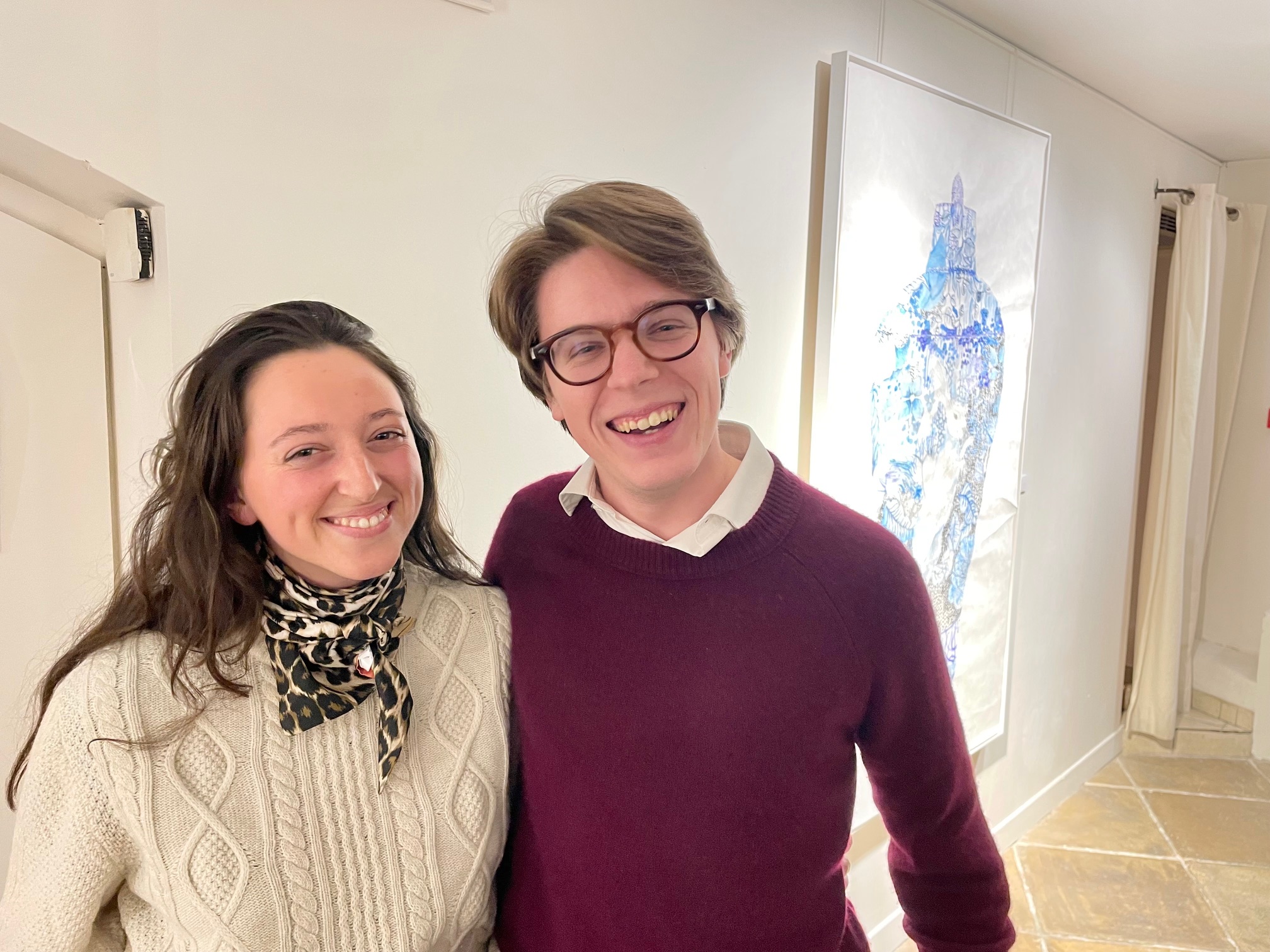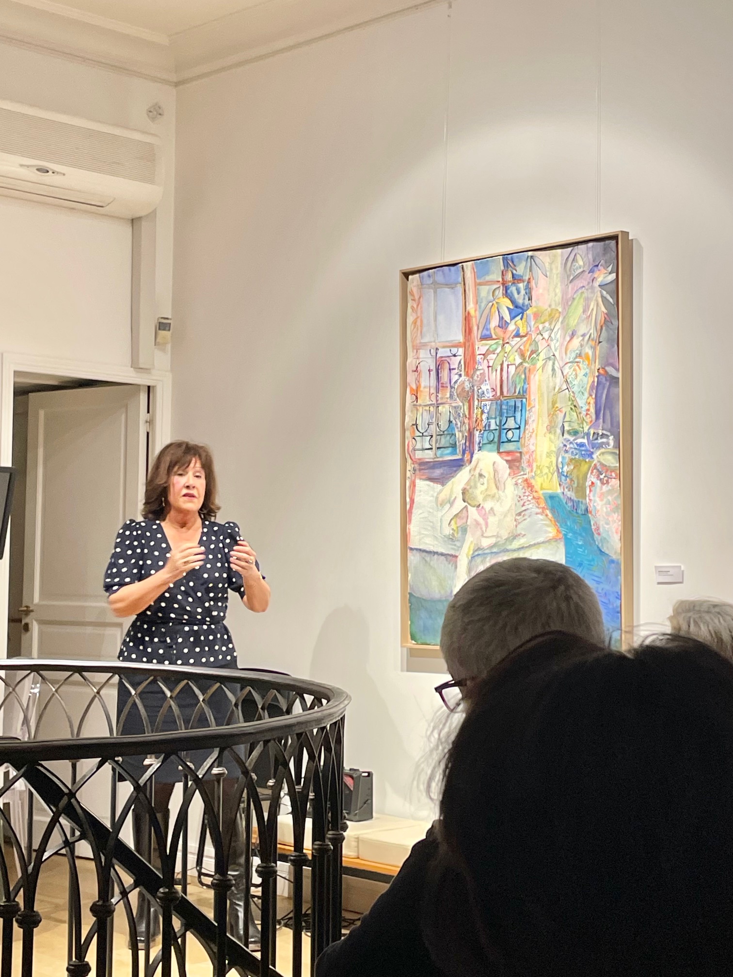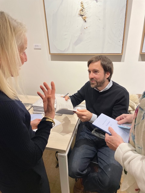 À la Galerie Guillaume hier soir : ambiance légère et joyeuse, très parisienne, à l’occasion du finissage de l’exposition d’ Elzbieta Radziwill. En effet, une conversation a été organisée entre Elzbieta, qui vit et travaille à Varsovie, et Mathilde Favier, figure de Dior Couture dont elle est la directrice des relations publiques depuis des années, parisienne jusqu’au bout des ongles. Le sujet : l’art de vivre à Paris et à Varsovie. La soirée était animée par Colombe Schneck, écrivaine et journaliste au Figaro. Après cette conversation libre et amusante, Mathilde Favier a signé au milieu des œuvres d’Elzbieta son livre « Mathilde à Paris » (Flammarion) dans lequel elle loue tous les attraits de Paris, sa ville de cœur.
