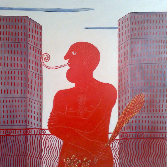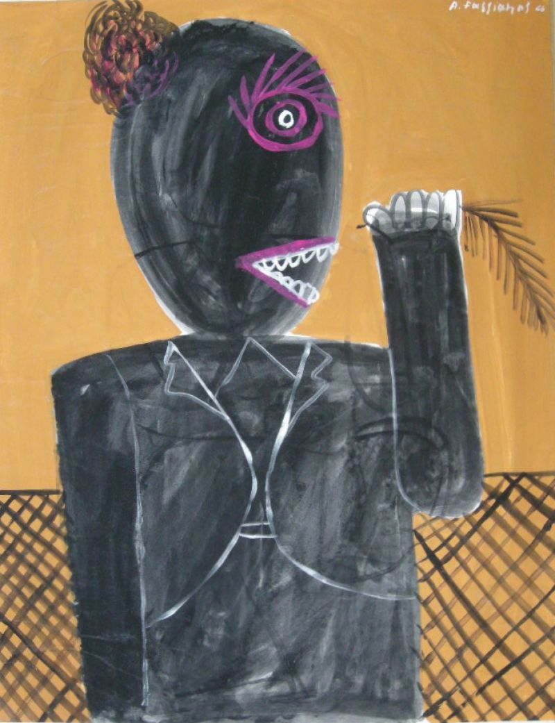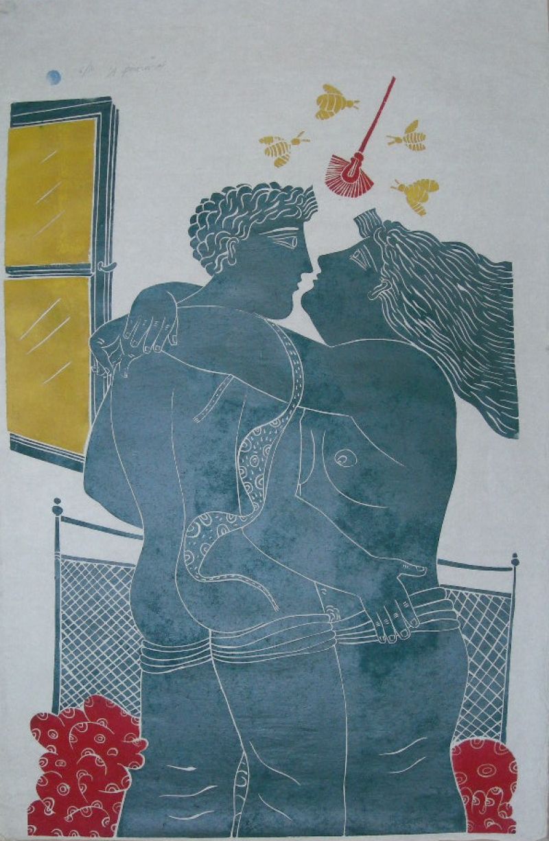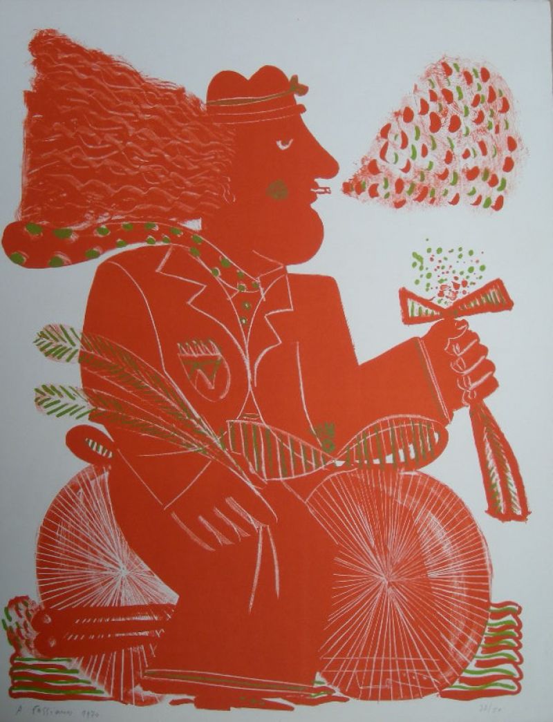 Né en 1935, Alecos Fassianos étudie à l'Ecole des Beaux-Arts d'Athènes. Détenteur d'une bourse, il séjourne à Paris pendant trois ans et étudie la technique de la lithographie. Il décide de s'exiler définitivement à Paris lors de l'avènement de la dictature des Colonels en Grèce en 1967. Frappé par la singularité de son œuvre, Paul Facchetti l'expose dès 1969, et édite une série de gravures et de lithographies exécutées entre 1968 et 1971. Comme l'a écrit Pierre Cabanne: « Fassianos habite un pays mythique qui se situe mal sur la carte, mais est voué à la clarté éblouissante du soleil, aux parfums des fleurs, au bruissement du vent tourbillonnant autour des oiseaux dont le plumage est couleur d'arc-en-ciel. Dans ce pays où se dressent des temples rongés de lumière, où les plus belles légendes du monde et le culte des héros ont trouvé place, Fassianos a imaginé que pouvaient revivre ces héros et ces dieux, mais se rencontrer aussi des amoureux à bicyclette, passer des baigneuses aux gros seins ronds et au ventre plat, toujours échevelées, se mesurer des athlètes musclés à des cavaliers brandissant des écharpes comme des trophées, des éphèbes au torse lisse qui tendent, la cigarette aux lèvres, des bouquets de fleurs ou des épis de blé à d'improbables partenaires ».