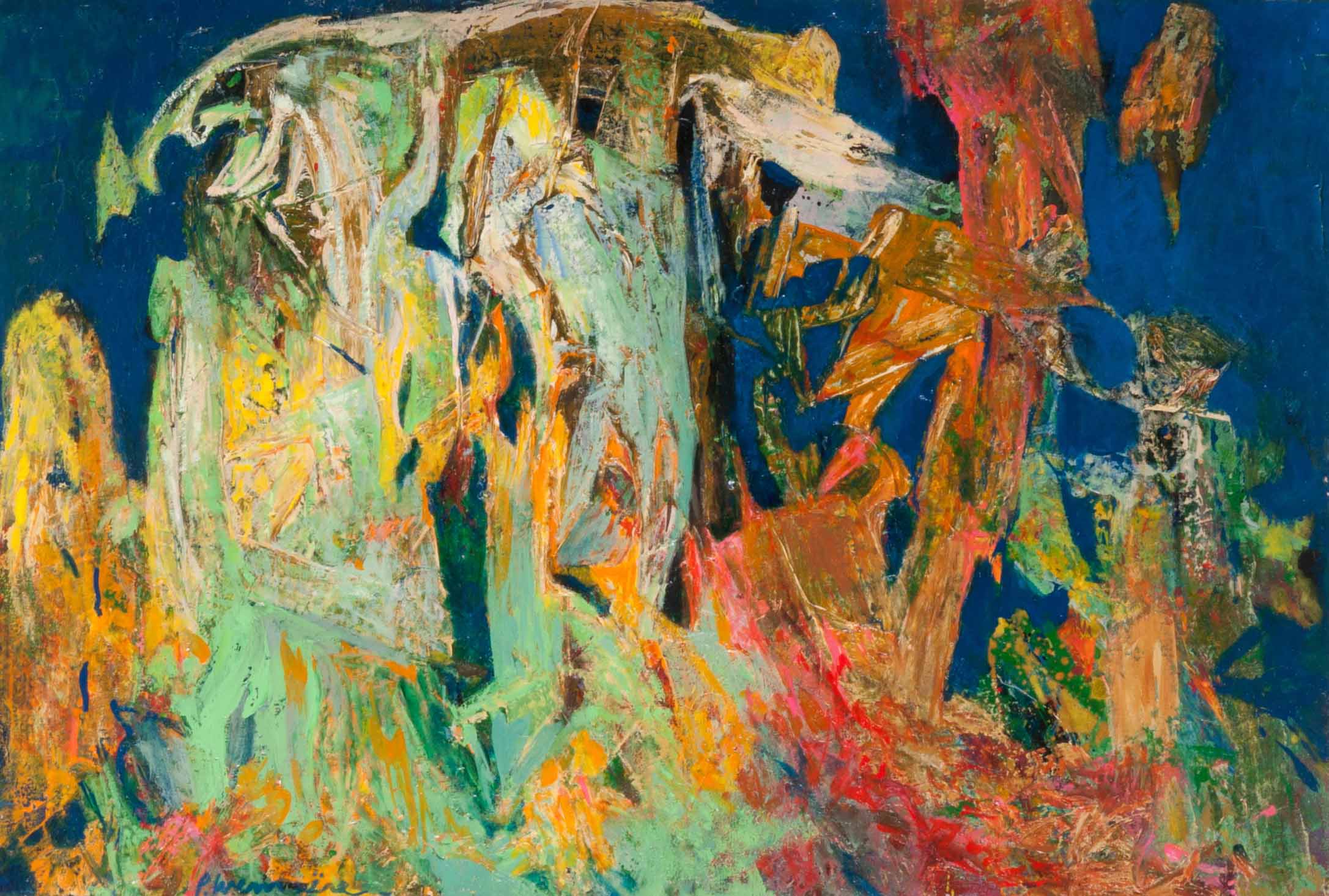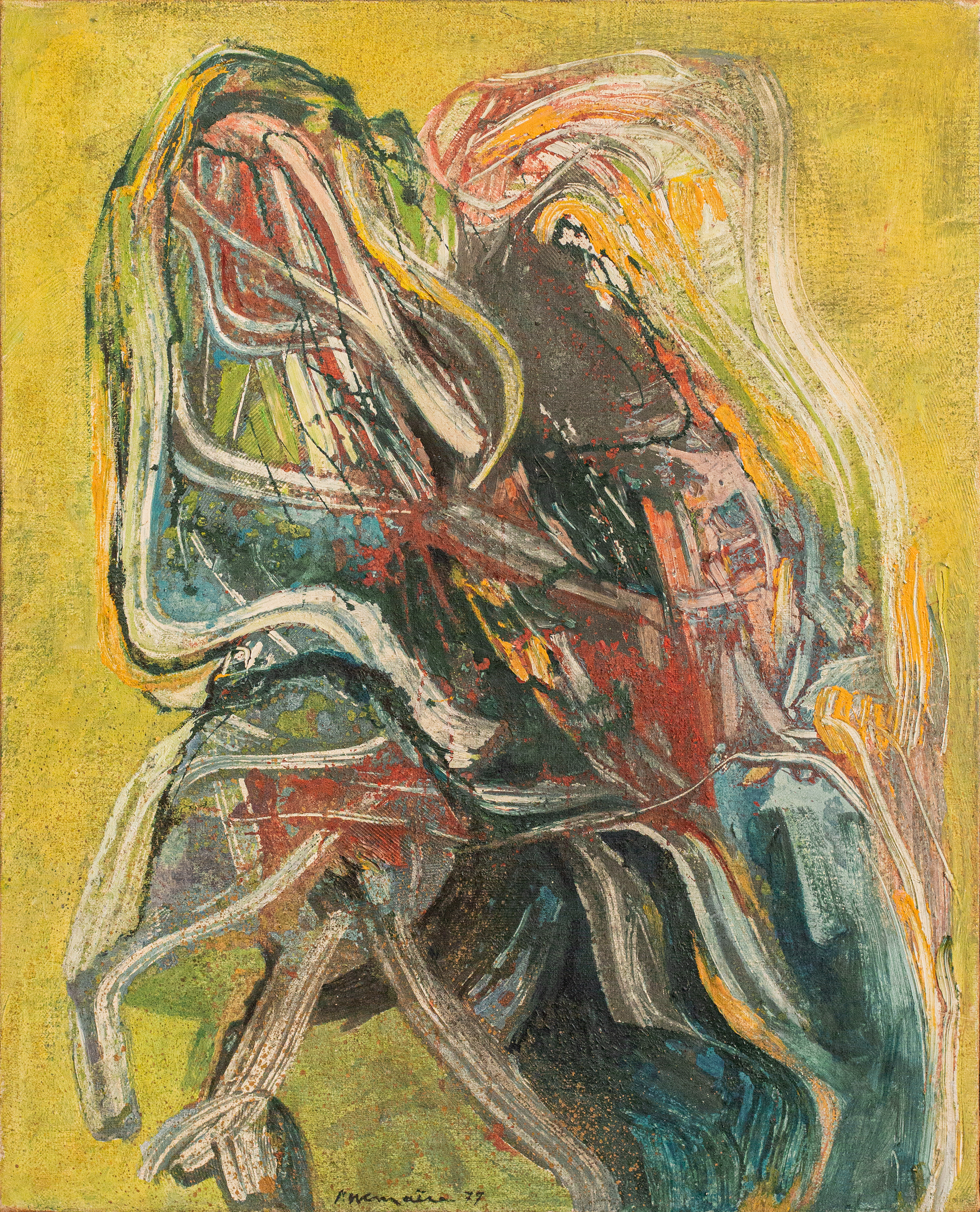 Séduit par le lyrisme de Kandinsky, il aborde la transposition plastique des images concrètes et affirme sa progression vers l'abstraction en 1938-39.