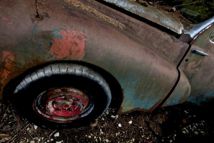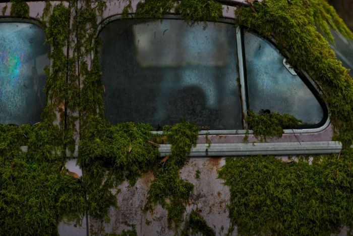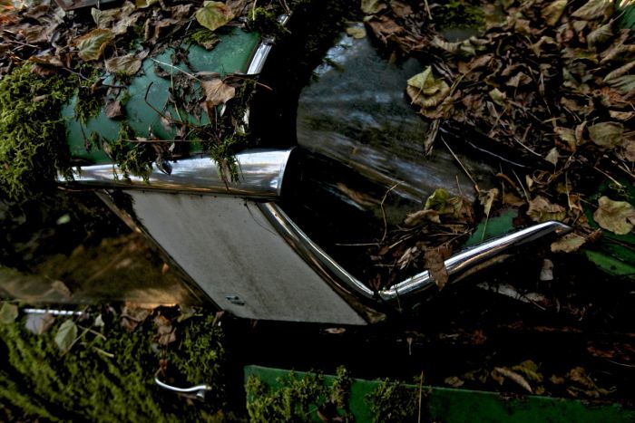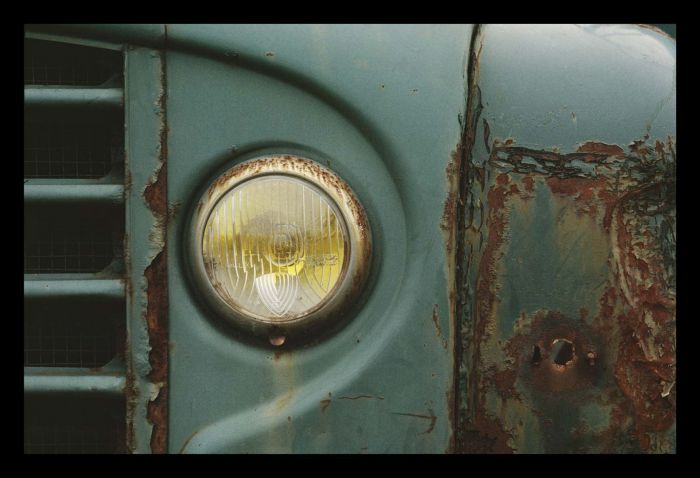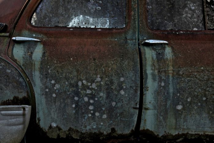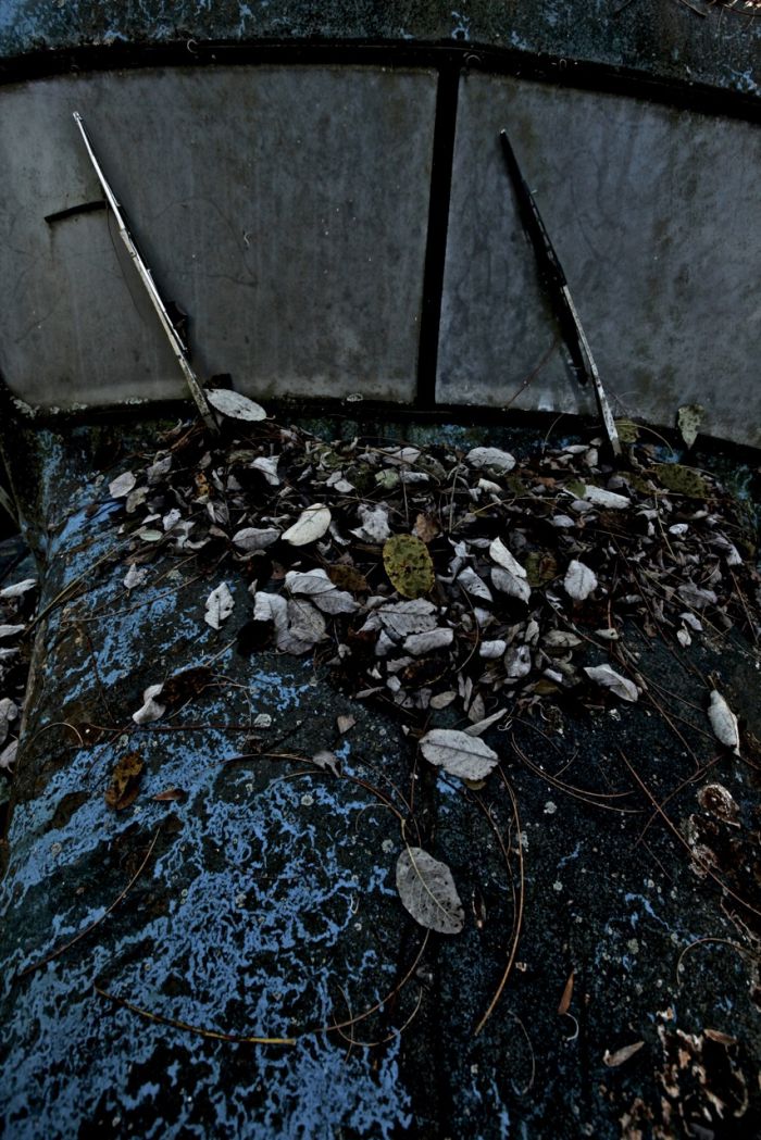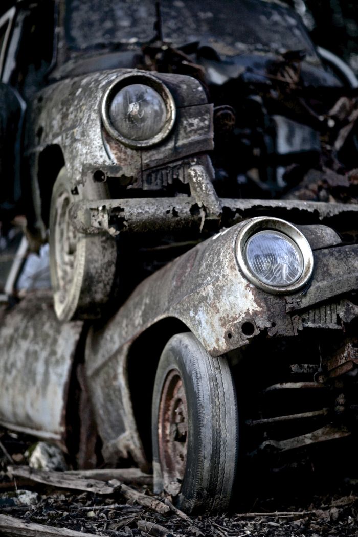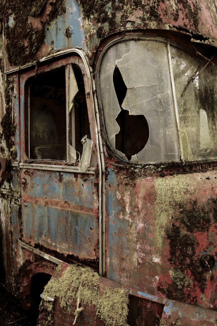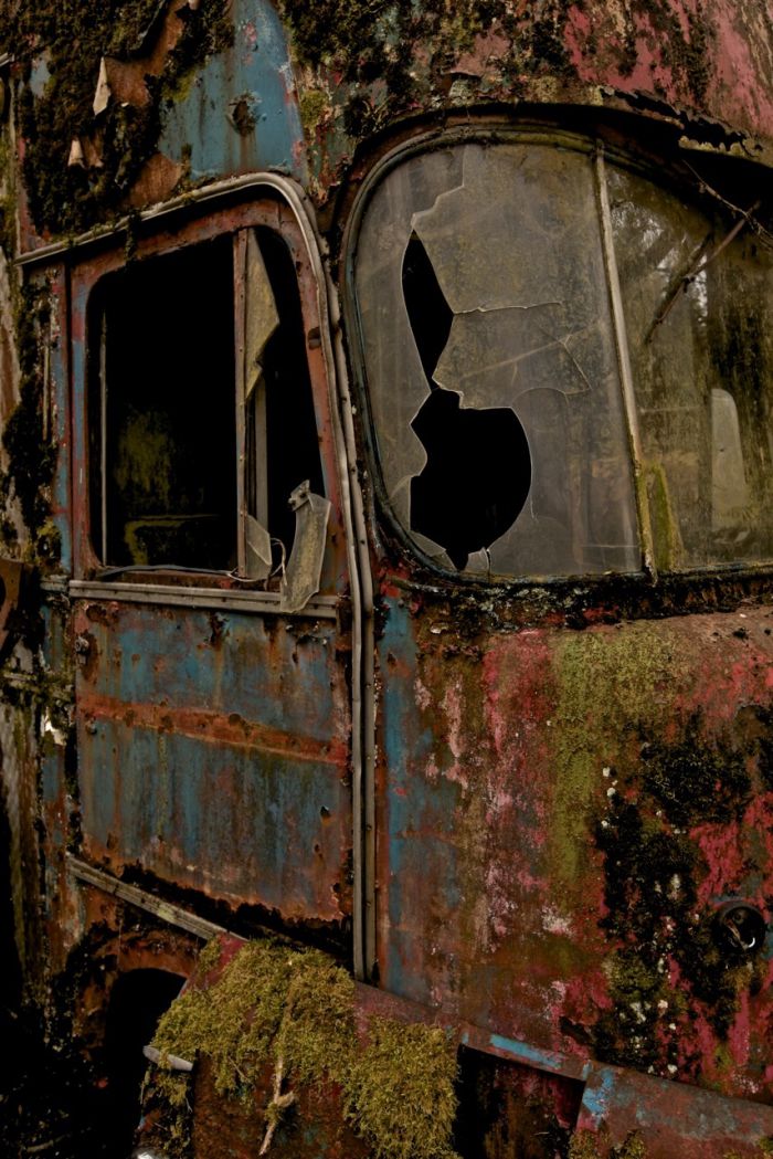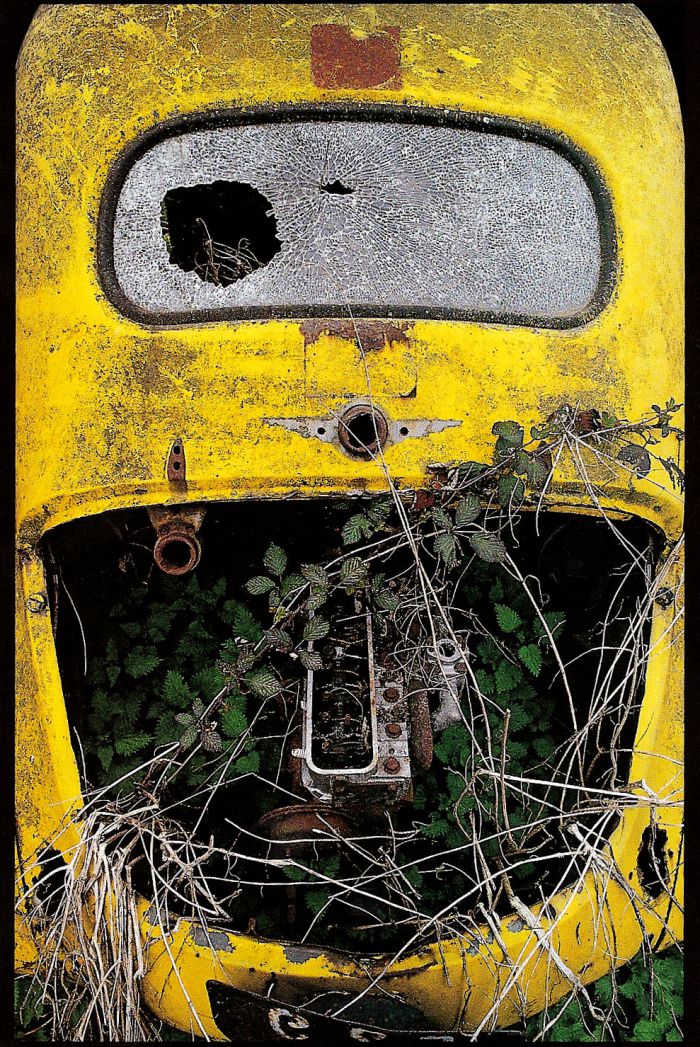 Le verre brisé de la 4 Chevaux jaune, series Requiem