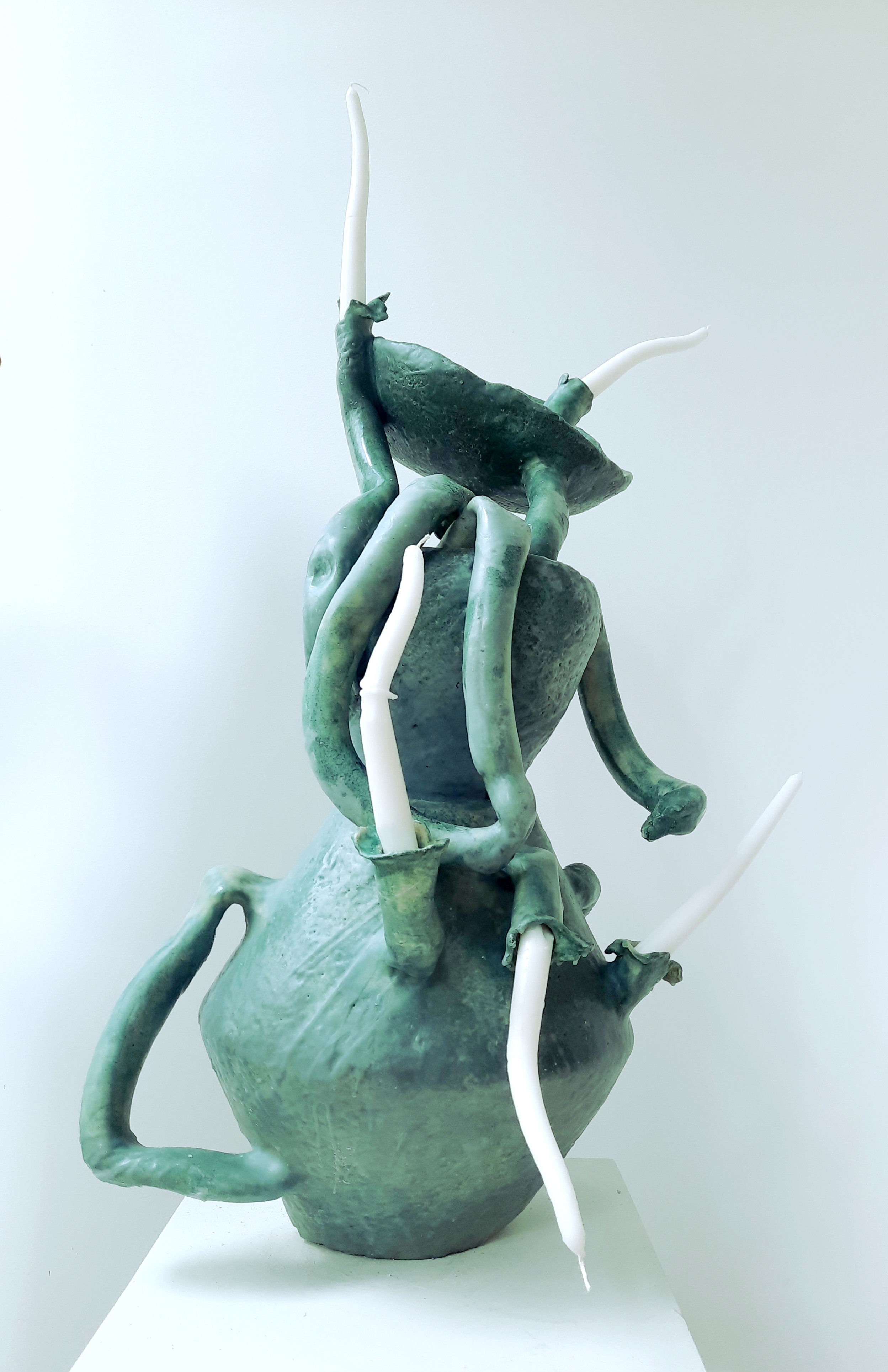 , sculpture de grès cuite et paraffine
