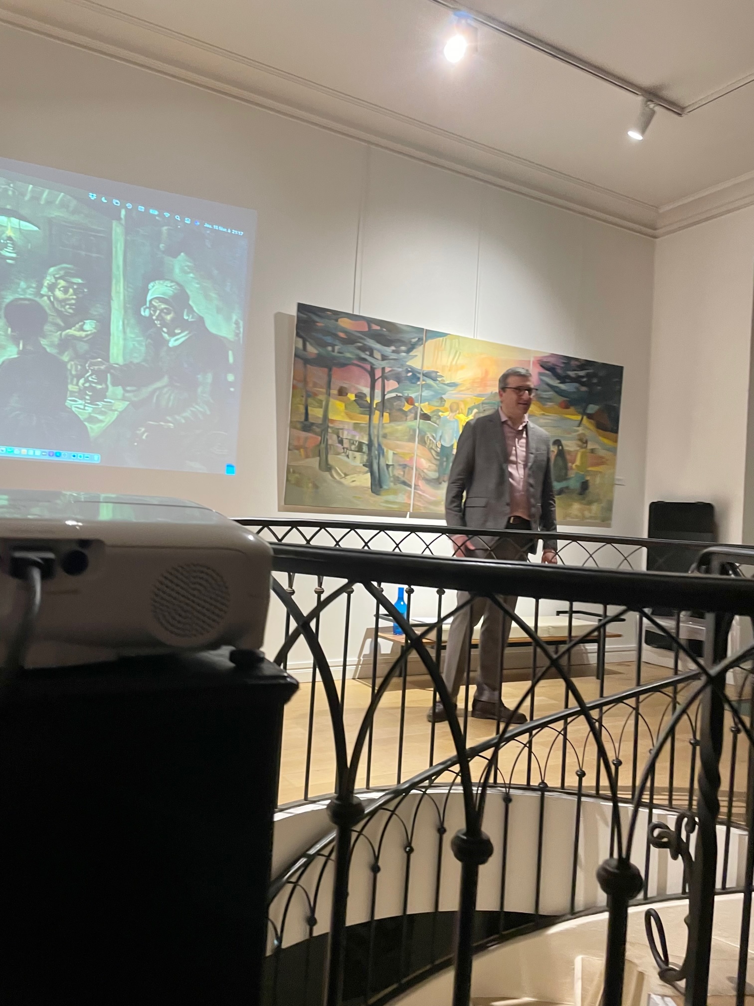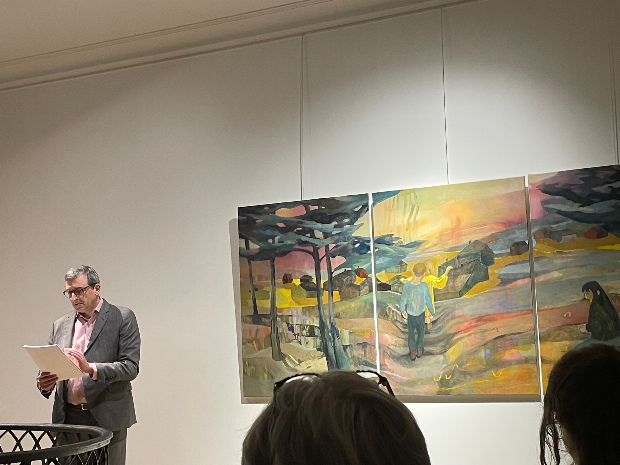 Alors que la magnifique exposition sur les derniers mois de Vincent van Gogh à Auvers-sur-Oise vient de se terminer au musée d'Orsay, la Galerie Guillaume a proposé une lecture de lettres de Vincent à son frère Théo par le comédien Thomas Sacksick. Celui-ci a lu quelques-unes des 650 lettres écrites par Vincent, datant de 1883, dans lesquelles il exprime souvent sa solitude et son indigence d'artiste. Mais où il affirme aussi fermement sa vocation de peintre, et son ambition. Cette lecture s'est tenue au milieu des œuvres d'Anna-Lisa Unkuri - dont ce sont les derniers jours de l'exposition - aux couleurs chaleureuses et nordiques.