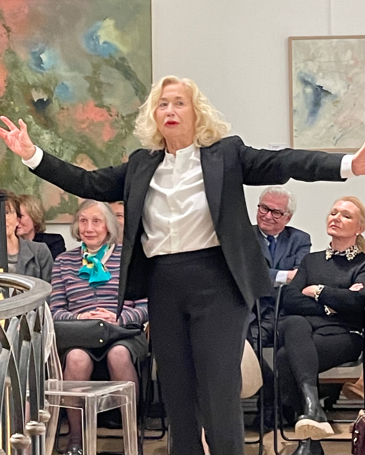 Mercredi 20 mars à la galerie, Brigitte Fossey a honoré le premier jour du printemps et Yves Lévêque en jouant de façon exceptionnelle son spectacle « La Fontaine en fables et en notes » actuellement au Théâtre de Poche-Montparnasse. Mimant à quatre pattes la tortue du « Lièvre et la tortue », sur une jambe « Le Héron », Brigitte Fossey, pleine d’énergie et de vie, s’est appropriée tout l’espace de la galerie avec pour décor les toiles remplies d’oiseaux d’Yves Lévêque… Elle était accompagnée de la pianiste virtuose Danielle Laval, son amie et complice, qui a ponctué les fables d'airs célèbres et de découvertes. Merci à toutes les deux pour ce moment enchanteur et à Stéphanie Tesson, directrice du Poche-Montparnasse, d’avoir permis l’organisation de cette soirée.