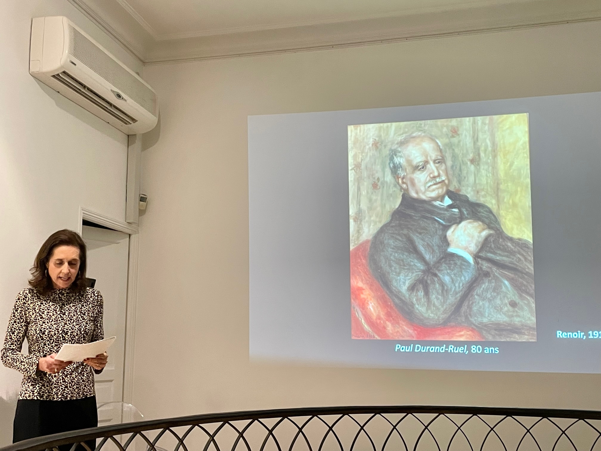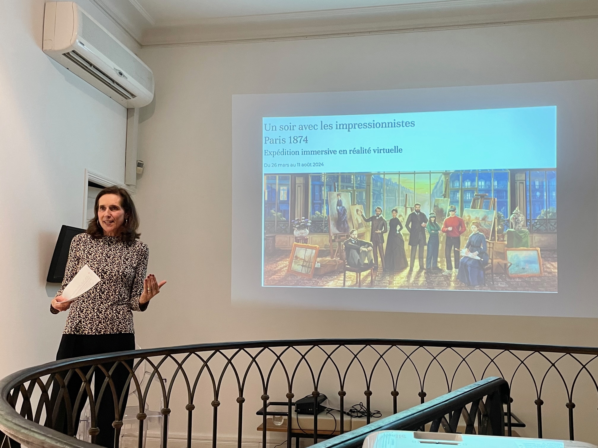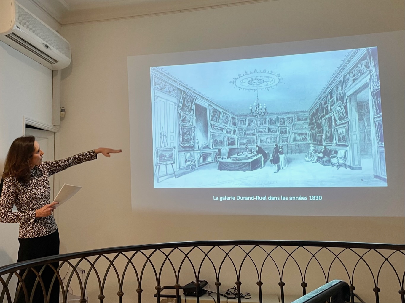 Hier soir, Claire Durand-Ruel était l’invitée de la nouvelle Rencontre Next Gen (soirées destinées aux jeunes de 30-40 ans), après le peintre Silvère Jarrosson, l’expert Eric Turquin et le collectionneur Pierre-Jean Chalençon. Claire Durand-Ruel est historienne de l’art, commissaire d’expositions, spécialiste de l’œuvre de Camille Pissarro et arrière-petite-fille du marchand des impressionnistes Paul Durand-Ruel. Au moment où est célébré partout en France le 150ème anniversaire de l’Impressionnisme, Claire a rendu un vibrant hommage à son aïeul en rappelant sa vie extraordinaire, faite de prise de risques et de passion. Mais surtout en nous présentant chacun des grands peintres pour lesquels Paul Durand-Ruel s’est engagé totalement et constamment, parfois jusqu’à les faire vivre, eux et leur famille : Monet, Pissarro, Sisley, Renoir, Manet, Morisot, etc. En échange, Paul Durand-Ruel achetait leurs toiles en masse, devenait ainsi leur marchand exclusif, montait des expositions magistrales, était le héraut de cette « peinture nouvelle ». Lâché un moment par ses clients, il fit faillite avant de retrouver la santé financière et la reconnaissance avec l’ouverture du marché américain, un véritable boulevard. Claire Durand-Ruel conclut en rappelant que Paul Durand-Ruel fut le premier marchand moderne car il a mis au point les méthodes du commerce de l’art qui sont encore celles du marché aujourd’hui.